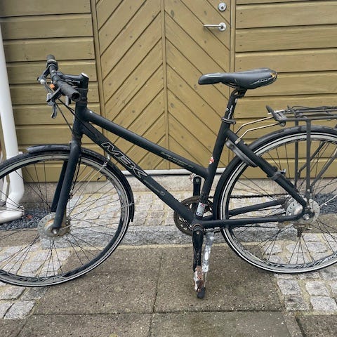 Brugt damecykel fra MBK genesis. 7 indvendige gear, støtteben, bagagebærer, fast cykellås, som er forsikringsgodkendt. Nyserviceret med smarte nye kabler. Nypris med bagagebærer og lås var 7500.
