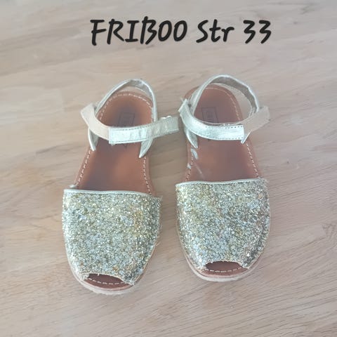Friboo sandaler til pige str. 36 i guldfarvet læder med indersål i læder og gummisål. Nogle brugsspor - se billeder - men de kan bruges en sæson eller to mere.