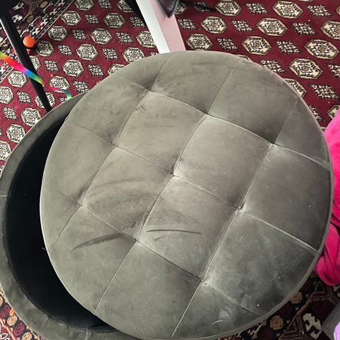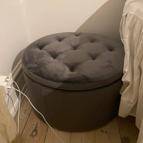 Puf med mørkeblå velour med opbevaring