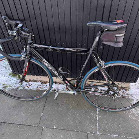 Drivlinien er ganske ny. Kæden har gået ca 1600 og er nyvokset. Kassetten (11-32) omkring 4000. Klingerne også ca 4000. Pulleyhjul er med keramiske lejer og fra Tripeak.