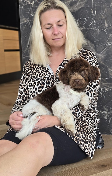 Mor er en kærlig og mild Labradoodle. Hun vejer omkring 12 kg.