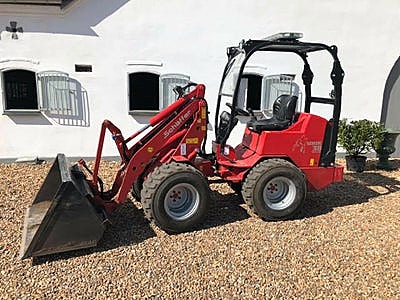 Weidemann 1370 minilæsser, starter og kører godt, 2 gear, kardan træk, pæne dæk, led arbejdslys, egenvægt 2400 kg, timetæller viser 2200 timer (står stille), årg 2002, der medfølger skovl og pallegafler