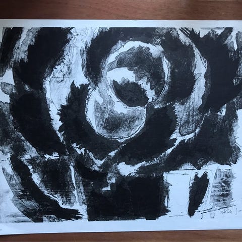 Litografi , Frede Christoffersen , motiv: Solbillede, b: 42 h: 38, Smukt farvelitografi af Frede Christoffersen. Signeret i stenen FC 65. Sendes gerne for købers bekostning.