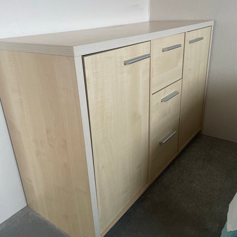Skænk fra Ikea, som jeg gerne vil have fra hånden, da jeg bor i lejlighed, og det er blevet lidt proppet :-) Skænken er i god stand, men har nogle ridser på højre låge. Jeg er ikke ryger, så ingen lugt eller lignende.