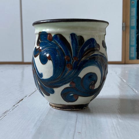 Da det er en Celadon glasur har den naturlige revner i glaseringen fra produktionen.