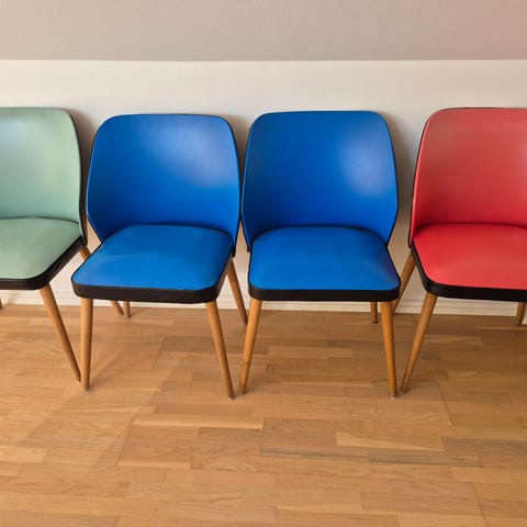 i sort skai med teak ben. Prisen er pr. stk den hvide er solgt. Tager du begge 2 er det 400,- for begge