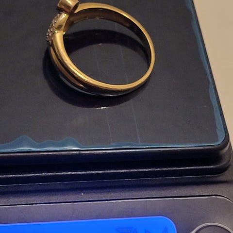 Ringen er stemplet KL/KL og er str 58,5. Den vejer 1,15g