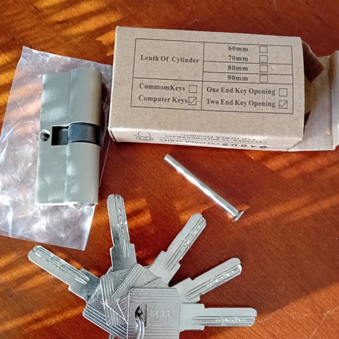 Sæt med forskellige låsebeslag og dørhåndtag i metal. Indeholder flere beslag i forskellige farver og designs samt et par dørhåndtag. Velegnet til udskiftning eller reparation af døre. BYD BYD BYD