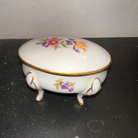 Håndmalede lak skrin - med håndskåret blomst.
