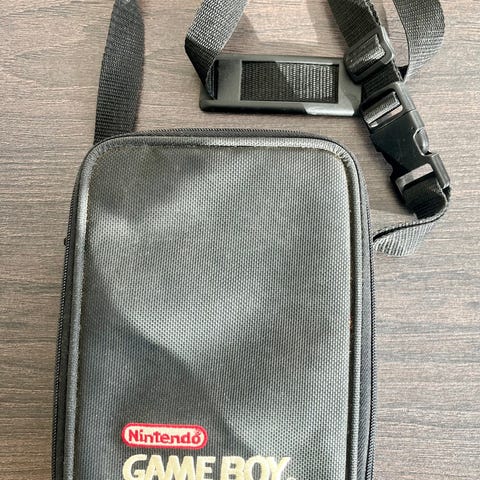 Her sælges en original vintage GameBoy Colour taske med plads til maskine, spil og tilbehør. Super lækker og retro.