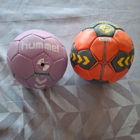 En vintage blå håndbold med slidte mærker og synlige tegn på brug. Kuglen er lavet af syntetisk materiale og har en klassisk sekskantet mønster. Velegnet til samling eller dekoration. Fra Hummel størrelse 2