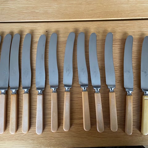 6 stk retro spiseknive længde 21 cm fra danske Asni. Serie Venus med perlemor