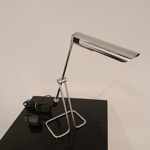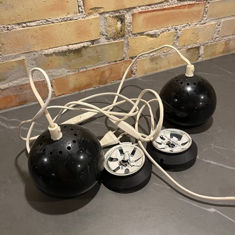Her har de gjort kugle lampen til en bordlampe med flot glas skærm