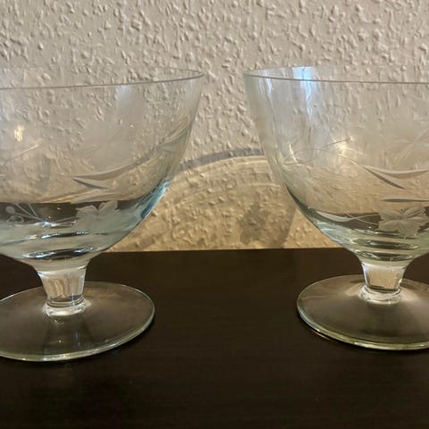 Elegant vintage krystalskål med rubinrød dekoration