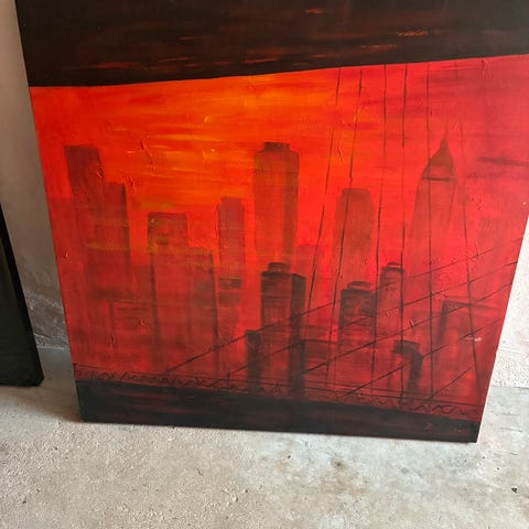 Maleriet i smuk bred guldramme er i perfekt stand på 68 x 38 cm og maleriet 60 x 30 cm