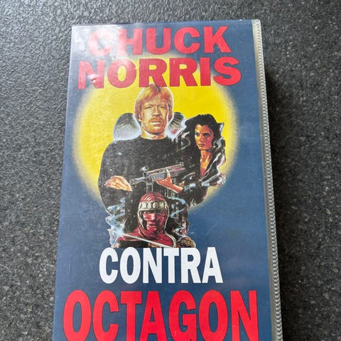 Chuck Norris Contra Octagon VHS film med en spilletid på 100 minutter. Filmen er en actionfilm hvor Chuck Norris spiller Scott James, der leder en gruppe soldater i en mission mod en terrororganisation. VHS-kassette med original emballage og garanti mærkat fra Timex Video A/S.