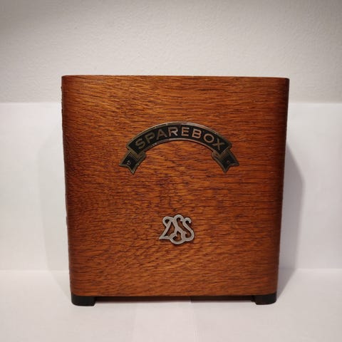 Sparebøsse fra den nordslesvigske folkebank og fra ikke ryger hjem sælges ( den har synlige brugsspor )