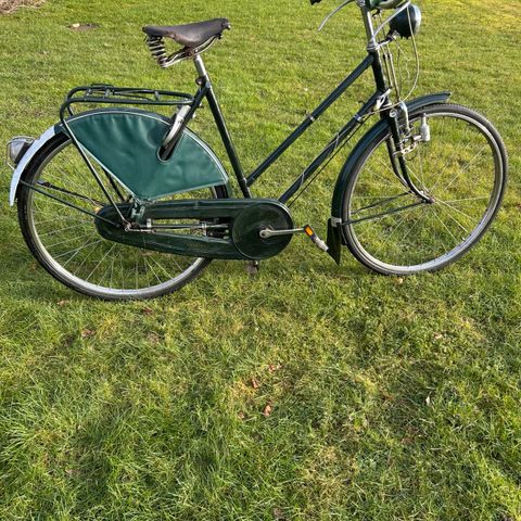 Yderst velholdt og flot Veteran Raleigh turist deluxe fra 1970 original Made in England,55 år gammel ,cyklen stået altid inde ,smurt og efterset og fik helt nydæk ,ingen rust på stel og kædeskærm,den kører og bremser fint som den gang,fejlfrit med 3 sturmey Asher gear,hånd og fodbremse,fin original blød sadel med fjedrer,godkendt lås,fast monteret kurv,klokke og støtteben,lukket kædekasde,fine rustfri stål fælger og rustfri eger,lygter og reflekser,robust,sort,57 cm stel passer til 160-180cm,stel,nr WAR08520G,super billigt 50118000