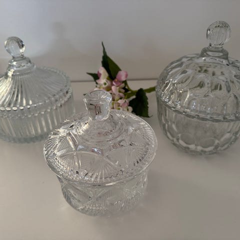 F.eks. som sukkerskål, til slik, nødder, chokolade eller til opbevaring af f.eks. vatrondeller på badeværelset eller til smykker eller andre småting.