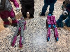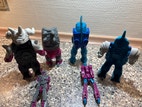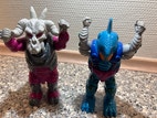Transformers 1987 actionfigurer Pretenders Skullgrin FrostShell og Submarauder. Figurerne er fremstillet i plast og har detaljerede farver i blå, grå og lilla nuancer. Sættet inkluderer to hovedfigurer og to mindre dele, der kan tilkobles eller bruges som tilbehør. Egnet til børn og samlere af Transformers legetøj. Kan sendes på købers regning