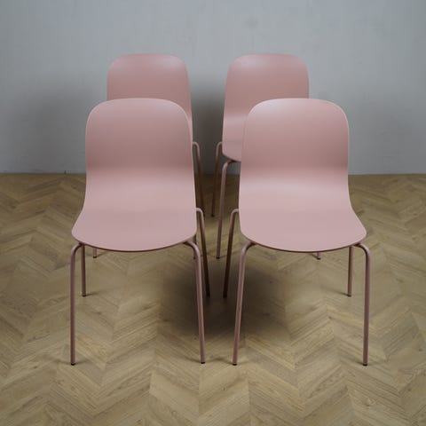 Stolene har en formstøbt plastskal i blå, der giver en ergonomisk siddeoplevelse og gør dem lette at rengøre. Det elegante sortlakerede metalstel giver en robust konstruktion, der samtidig bevarer et let og stilrent udtryk, hvilket gør stolene velegnede til både konference- og mødelokaler, undervisningsrum og kantiner.