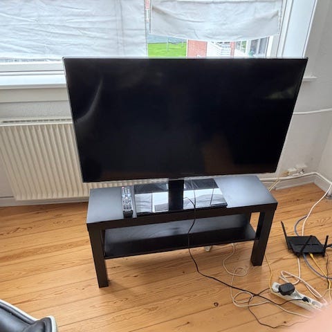 Samsung tv med tilbehør.