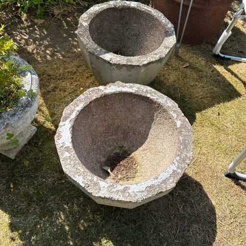 Ukendt Blomsterpotter Sæt bestående af 5 stk i forskellige størrelser. Materiale: Beton. Farve: Grå. Design med rillede mønstre og robust struktur. Velegnet til indendørs og udendørs brug.