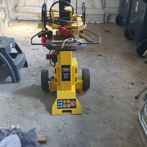 Texas Power-Split 2800W trækløver med elektrisk motor og hjul til nem transport. Designet til effektiv kløvning af træ, udstyret med en kraftig 2800 watt motor. Velegnet til udendørs brug til kløvning af brænde.