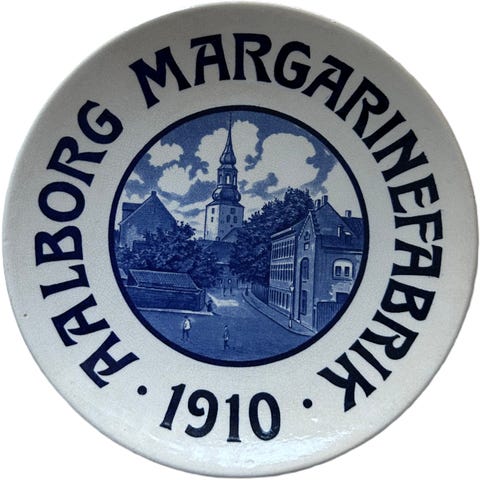 Super flot hvid/blå firma platte fra danske Millhouse.