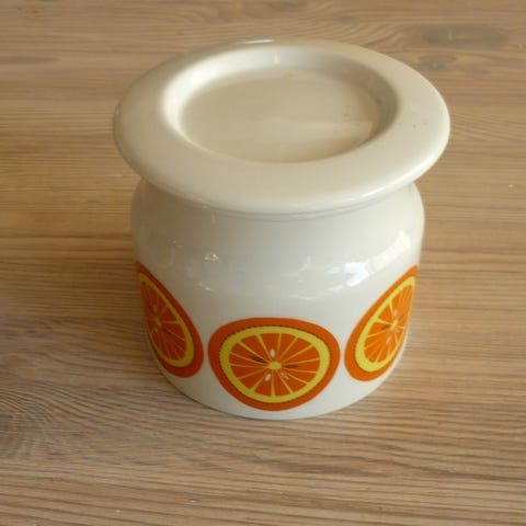 Arabia, Finland, Marmeladekrukker. Designet af Ulla Procope og Raija Uosikkinen i starten af 1970'erne.