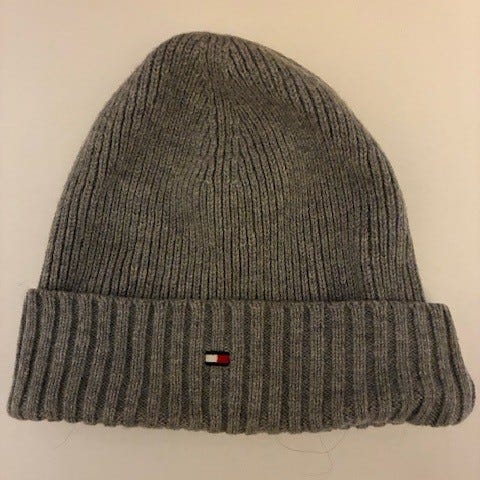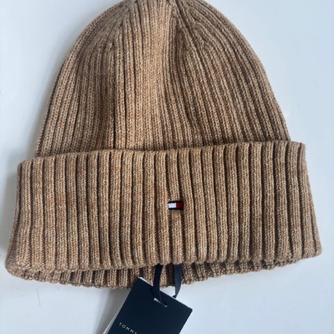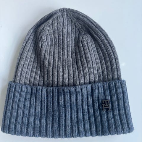 Hue Tommy Hilfiger tr. One Size NY og ubrugt - fejlkøb. Lysegrå og fin. Købt for 300 kr. 50% organisk bomuld, 45% bomuld, 5% cashmere. Ann. nr. D109
