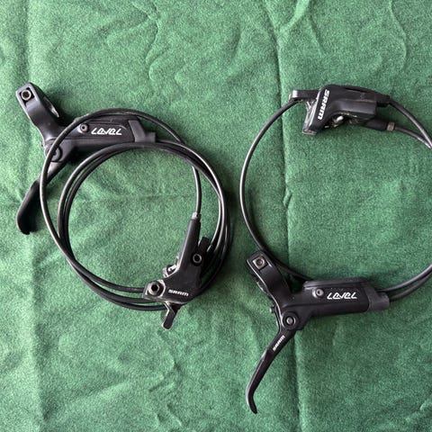 For og bag bremse med stadig brugbare bremseklodser . Fungere super men den ene har nogle kosmetiske ridser. Taget af canondale scalpel si3.
