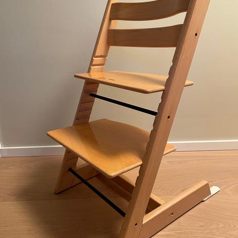 Den klassiske trip trap stol fra Stokke Højstol i træ med naturlig finish.