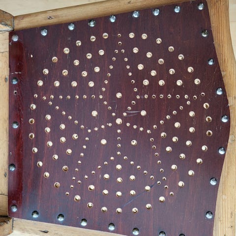 Vintage/almue dekorativ stol med perforeret/punslet stjerne mønster. Mønsteret kaldtes også "hulsøm" mønster, pga ligheden med syninger.
