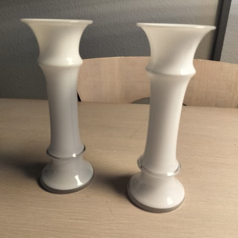 Blå opal vaser fra Holmegaard Glasværk højde 18 cm. De er begge fine og velholdte, uden skår og revner