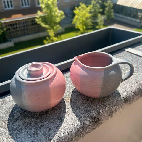 Sukker og flødekande , Kan ikke tyde det, På smuk oval bakke - art deco. Virkelig flot sæt i sølvplet.