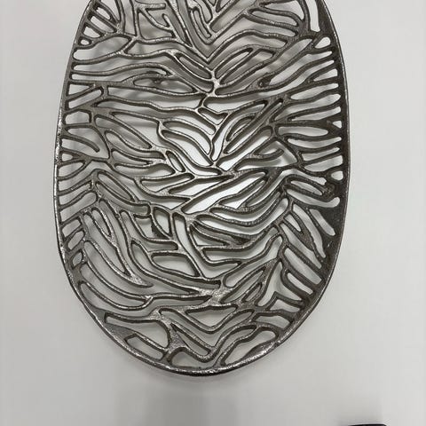Dette er et sæt af to runde plader lavet af sølv. De har en diameter på 13 cm og en højde på 1,5 cm. Pladerne har en glansfuld finish med nogle tegn på brug på overfladen. De kan bruges til at holde mindre genstande eller til dekoration i hjemmet.
