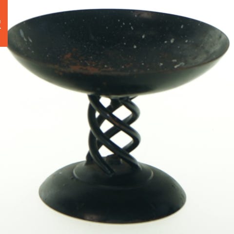 Dette er et rundt metalfad med en diameter på 8 cm. Fadet har bølgede kanter, hvilket giver det en dekorativ struktur. Det er fremstillet i metal med en skinnende overflade, der reflekterer lys. Der er ingen synlige logoer eller mærkninger, som angiver et bestemt brand.