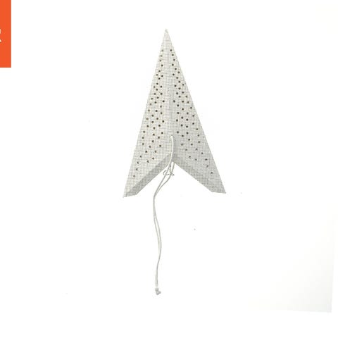 En dekorativ stjernelygte, der måler 60 cm. Produktet inkluderer en stjerneformet papirlygte med et geometrisk mønster i guldfarver og andre dele, der er nødvendige for montering. Pakken indeholder instruktioner for at samle og hænge lykten op. Meget velegnet som dekoration til højtider og specielle lejligheder. Tags: stjerne, lygte, dekoration, papirstjerne.