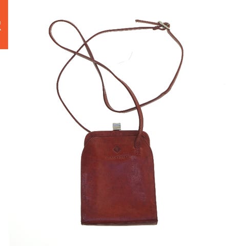 Denne orange clutch er lavet af læder og er kompakt i størrelsen 15x23x1 cm. Clutchen har en lille rem, der kan bæres rundt om håndleddet, hvilket gør den let at transportere. Den har en hovedlås med trykknap samt en lynlås i midten og baglommer til opbevaring af små ejendele. På forsiden er mærket 'Puccini' indgraveret.