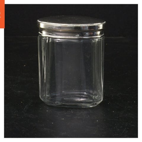 Sæt med fem glasbeholdere med metal låg (str. 14x8 cm)