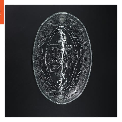 Glasfad med mønstret kant (str. 26x12x3,5 cm)