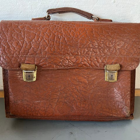 Skoletaske i brun læder - retro