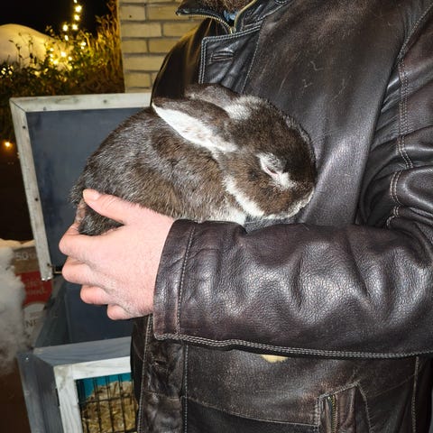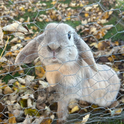Er en ude kanin og elsker og løbe i løbegården gå en tur i haven.