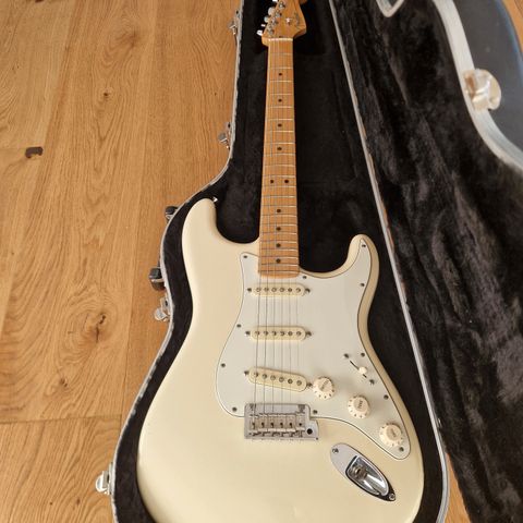 Sælger denne lækre Stratocaster i silverburst (silver burst) og med ibenholt gribebræt. To elementer man sjældent får lov at opleve hos Fender.