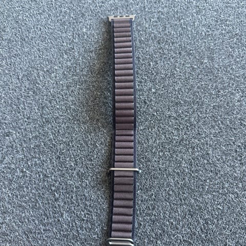 Original Apple urrem lavet af blå / lilla silikone. Remmen har justerbare huller til tilpasning af størrelsen og er designet til kompatibilitet med Apple ure.