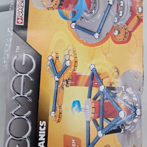 Geomag Mechanics børn legetøj sæt med magnetiske stave og metaldele. Indeholder forskellige komponenter til konstruktion og mekaniske modeller. Velegnet til børn til udvikling af kreativitet og tekniske færdigheder.