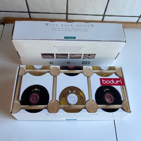 En stor og skøn vinreol fra Bodum. Samle selv og i denne er der en hylde i midten til store flasker eller glas.