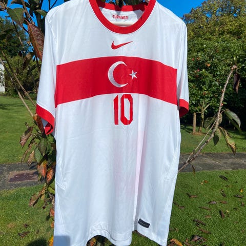 Nike Tyrkiet Fodboldtrøje og Shorts i rød og hvid farve. Sættet består af en rød fodboldtrøje med korte ærmer og matchende røde shorts samt hvide shorts med røde detaljer. Materialet er let og velegnet til sport og træning.