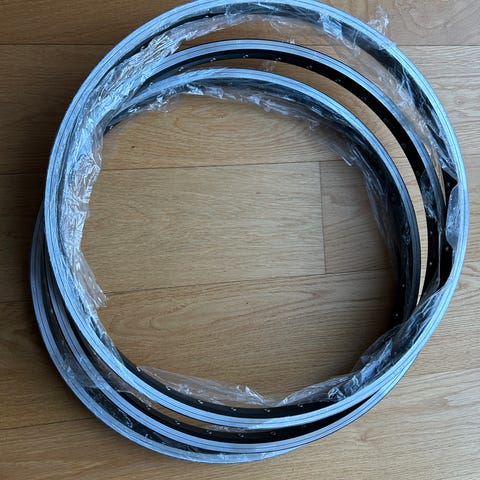 Fælgslange og dæk sammen.